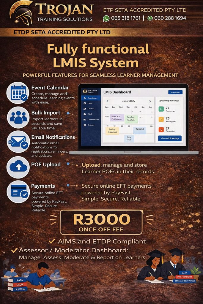 Trojan Training Solutions is an accredited training provider with the ETDP SETA and QCTO (ETDQA)